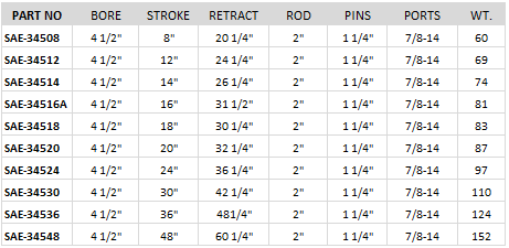 4.5" Bore x 24" Stroke Prince ROYALPLATE Cylinder B450240ACDDA07BStore/Hydraulic Cylinders/Prince Tie Rod Cylinders/4.5" Bore Prince ROYALPLATE Cylinders$641.35Sold outSold outProduct DetailsSAE-34524 4.5" Bore x 24" Stroke Prince ROYALPLATE Cylinder Longer Lasting - 3 year warranty - 7 years against rod corrosion! Better quality, American cylinders. 3000 PSI. Royalplate chrome-over-nickel case-hardened rods, stronger construction, urethane rod & piston seals! 2-part Urethane paint, O-ring ports, clevis pins included.Show MoreShare this product with your friendsShareSharePin it4.5" Bore x 24" Stroke Prince ROYALPLATE Cylinder B450240ACDDA07BStore/Hydraulic Cylinders/Prince Tie Rod Cylinders/4.5" Bore Prince ROYALPLATE Cylinders
