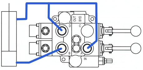 This is a modified 2 spool valve which is used to automatically cycle a hydraulic cylinder (out, back, stop). With the cylinder retracted, both handles are pulled back. The cylinder extends. When it reaches full extension, the first spool will kick to neutral and the cylinder will begin retracting. When it reaches full retraction, the second spool will kick off, and the cycle is complete. To begin the next cycle, both handles are again manually pulled back.