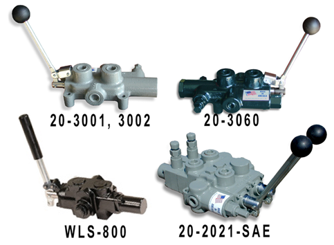 20-3001, 20-3002 LS-3000 Valves: Standard Prince log splitter valves with pressure-actuated detent for the retract stroke.